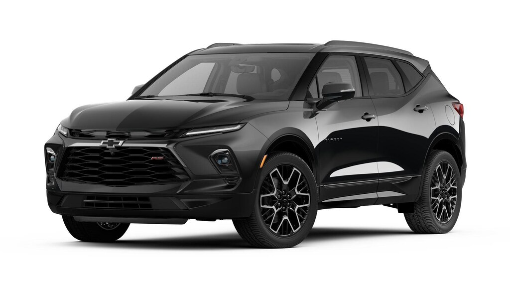 Black 2025 Chevrolet Blazer RS AWD 3.6L V6 SIDI 9-Speed Automatic with OverdriveBlazer RS, 4D Sport Utility, 3.6L V6 SIDI, 9-Speed Automatic with Overdrive, AWD, Black, Jet Black/Nightshift Blue Leather, 3.49 Final Drive Axle Ratio, 4-Wheel Disc Brakes, 6-Way Power Front Passenger Seat Adjuster, 8 Speakers, 8-Way Power Driver Seat Adjuster, ABS brakes, Adaptive Cruise Control, Air Conditioning, Alloy wheels, AM/FM radio: SiriusXM with 360L, Apple CarPlay/Android Auto, Auto High-beam Headlights, Auto-dimming door mirrors, Auto-dimming Rear-View mirror, Automatic temperature control, Bose Premium 8-Speaker Audio System Feature, Brake assist, Bumpers: body-color, Child-Seat-Sensing Airbag, Compass, Delay-off headlights, Driver Confidence II Package, Driver door bin, Driver vanity mirror, Dual front impact airbags, Dual front side impact airbags, Electronic Stability Control, Emergency communication system: OnStar and Chevrolet connected services capable, Enhanced Automatic Emergency Braking, Four wheel independent suspension, Front anti-roll bar, Front Bucket Seats, Front Center Armrest, Front dual zone A/C, Front reading lights, Fully automatic headlights, Garage door transmitter, HD Surround Vision, Heated door mirrors, Heated Driver & Front Passenger Seats, Heated front seats, Heated steering wheel, Illuminated entry, Knee airbag, Leather Shift Knob, Leather steering wheel, Low tire pressure warning, Navigation System, Occupant sensing airbag, Outside temperature display, Overhead airbag, Overhead console, Panic alarm, Passenger door bin, Passenger vanity mirror, Perforated Leather-Appointed Seat Trim, Power door mirrors, Power Driver Lumbar Control, Power driver seat, Power Liftgate, Power Panoramic Tilt-Sliding Sunroof, Power passenger seat, Power steering, Power windows, Preferred Equipment Group 1RS, Premium audio system: Chevrolet Infotainment 3 Premium, Radio data system, Radio: Chevrolet Infotainment 3 Premium System, Rear anti-roll bar, Rear Camera Mirror, Rear Camera Mirror Washer, Rear reading lights, Rear seat center armrest, Rear window defroster, Rear window wiper, Remote keyless entry, Ride & Handling Suspension, Safety Alert Seat, Security system, SiriusXM w/360L, Speed control, Speed-sensing steering, Split folding rear seat, Spoiler, Steering wheel mounted audio controls, Stop-Start Engine Control System, Tachometer, Telescoping steering wheel, Tilt steering wheel, Traction control, Trip computer, Turn signal indicator mirrors, Variably intermittent wipers, Voltmeter, Wheels: 20 Technical Gray Aluminum, Wheels: 21 High Gloss Black w/Machined Face, Blazer RS, 4D Sport Utility, 3.6L V6 SIDI, 9-Speed Automatic with Overdrive, AWD, Black, Jet Black/Nightshift Blue Leather.