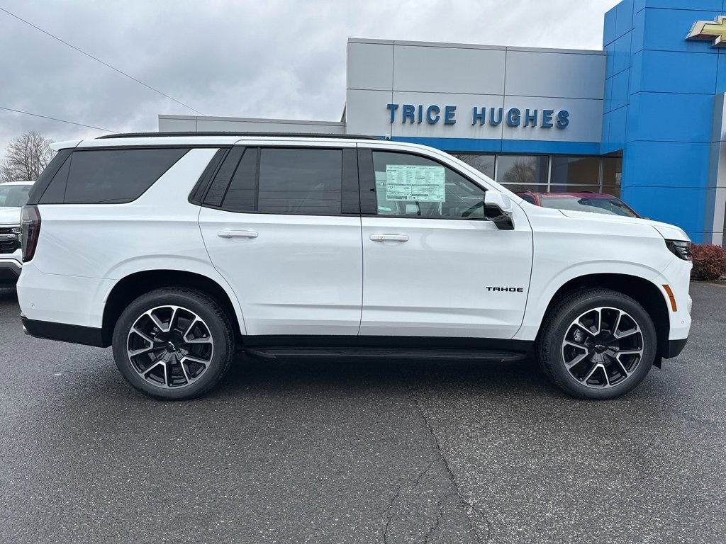 Tahoe RST, 4D Sport Utility, EcoTec3 5.3L V8, 10-Speed Automatic with Overdrive, 4WD, Summit White, Jet Black/Victory Red w/Perforated Leather Seat Trim, 1st and 2nd Row Color-Keyed Carpeted Floor Mats, 2-Way Power Driver Lumbar Seat Adjuster, 2-Way Power Front Passenger Lumbar Seat Adjuster, 3-Spoke Wrapped Steering Wheel, 3.23 Rear Axle Ratio, 3rd Row Manual 60/40 Split-Folding Bench Seats, 3rd row seats: split-bench, 4-Wheel Disc Brakes, 6 Speakers, 6-Speaker Audio System Feature, 8-Way Power Driver Seat Adjuster, 8-Way Power Front Passenger Seat Adjuster, ABS brakes, Air Conditioning, Alloy wheels, AM/FM radio: SiriusXM with 360L, Apple CarPlay/Android Auto, Auto High-beam Headlights, Auto-Dimming Inside Rear-View Mirror, Auto-dimming Rear-View mirror, Automatic temperature control, Brake assist, Bright Front and Rear Door Sill Plates, Bumpers: body-color, Color-Keyed Carpeting Floor Covering, Compass, Delay-off headlights, Driver door bin, Driver vanity mirror, Dual Exhaust System, Dual front impact airbags, Dual front side impact airbags, Electronic Stability Control, Emergency communication system: OnStar and Chevrolet connected services capable, Exterior Parking Camera Rear, Floor Console with Storage Area, Four wheel independent suspension, Front anti-roll bar, Front Bucket Seats, Front Center Armrest, Front dual zone A/C, Front fog lights, Front LED Fog Lamps, Front reading lights, Frontal Driver and Outboard Passenger Airbags, Fully automatic headlights, Garage door transmitter, Heated door mirrors, Heated Driver and Front Passenger Seats, Heated front seats, Illuminated entry, Interior Camera, Key Card, Low tire pressure warning, Memory seat, Memory Settings For Driver, Navigation system: Google built-in compatibility (select service plan required, terms and limitations apply), Occupant sensing airbag, Outside temperature display, Overhead airbag, Overhead console, Panic alarm, Passenger door bin, Passenger vanity mirror, Perforated Leather Seat Trim, Power door mirrors, Power driver seat, Power Liftgate, Power passenger seat, Power steering, Power windows, Premium audio system: Chevrolet Infotainment 3 Premium, Premium Smooth Ride Suspension, Radio data system, Radio: 17.7 Diagonal Advanced Color LCD Display, Rain sensing wipers, Rear air conditioning, Rear anti-roll bar, Rear Power Liftgate, Rear reading lights, Rear seat center armrest, Rear window defroster, Rear window wiper, Remote keyless entry, Remote Start, RST Exterior Features, Security system, Set of 4 Wheel Locks, SiriusXM with 360L Trial Subscription, Speed control, Speed-sensing steering, Split folding rear seat, Spoiler, Steering wheel mounted audio controls, Tachometer, Telescoping steering wheel, Tilt steering wheel, Traction control, Trip computer, Universal Home Remote, USB Ports, Variably intermittent wipers, Voltmeter, Wheels: 22 x 9 Bright Machined, Wireless Phone Charging, Tahoe RST, 4D Sport Utility, EcoTec3 5.3L V8, 10-Speed Automatic with Overdrive, 4WD, Summit White, Jet Black/Victory Red w/Perforated Leather Seat Trim.