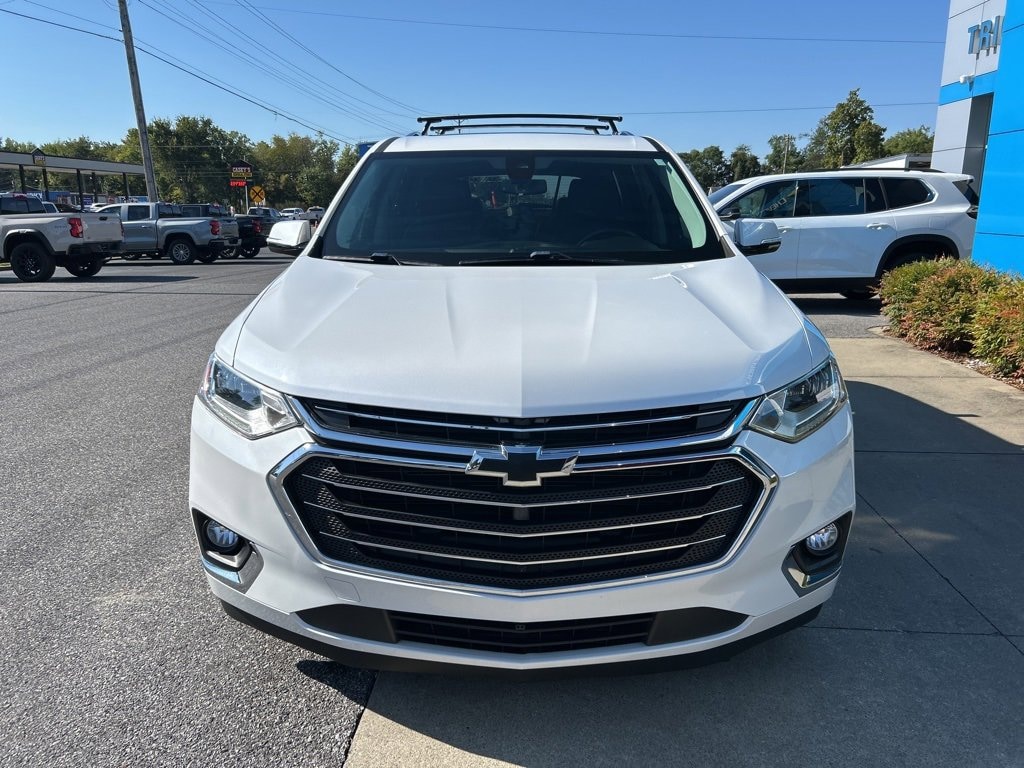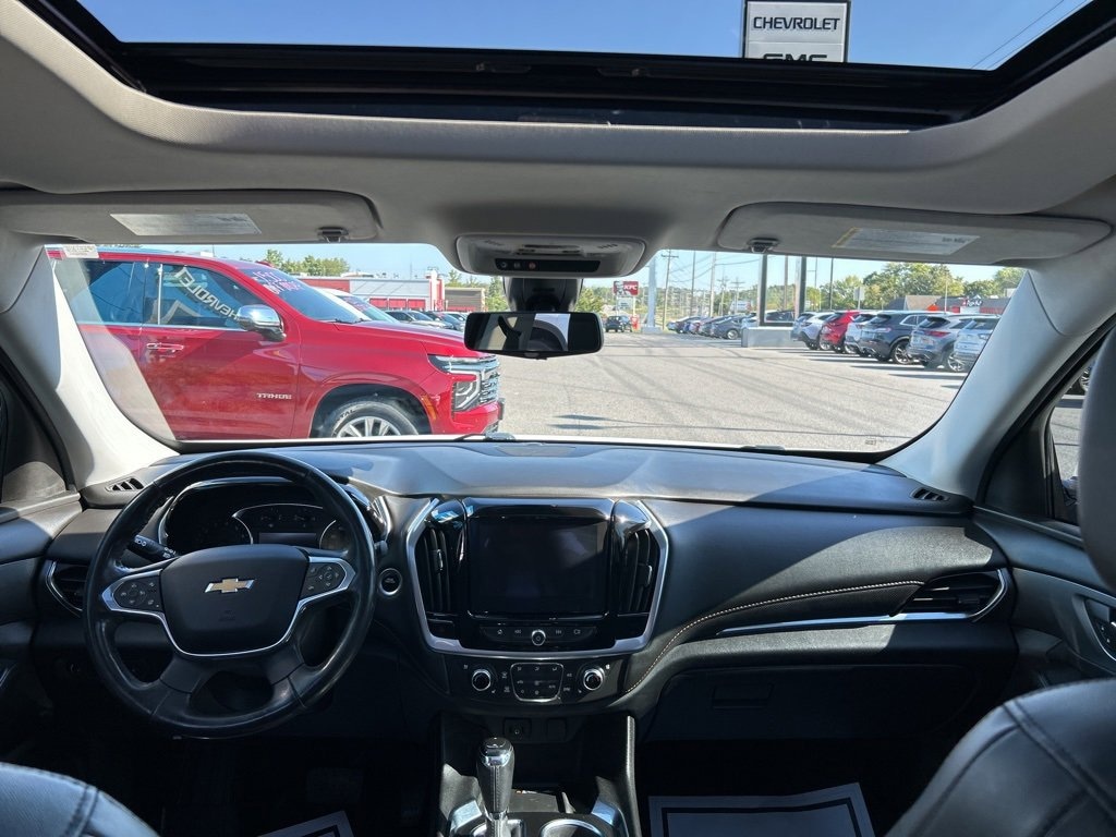 Traverse Premier, 4D Sport Utility, 3.6L V6 SIDI VVT, 9-Speed Automatic, AWD, Iridescent Pearl Tricoat, Jet Black Leather, 10 Speakers, 1st & 2nd Row All-Weather Floor Liner (LPO), 3.49 Axle Ratio, 3rd Row All-Weather Floor Liner (LPO), 3rd row seats: split-bench, 4-Wheel Disc Brakes, 7-Passenger Seating (2-2-3 Seating Configuration), ABS brakes, Air Conditioning, Alloy wheels, AM/FM radio: SiriusXM, Apple CarPlay/Android Auto, Auto High-beam Headlights, Auto-dimming door mirrors, Auto-dimming Rear-View mirror, Automatic temperature control, Bose Premium 10-Speaker Audio System Feature, Brake assist, Bumpers: body-color, Compass, Delay-off headlights, Driver door bin, Driver vanity mirror, Dual front impact airbags, Dual front side impact airbags, Dual SkyScape 2-Panel Power Sunroof, Electronic Stability Control, Emergency communication system, Floor Liner Package (LPO), Four wheel independent suspension, Front & Rear Black Bowtie Emblems (LPO), Front anti-roll bar, Front Bucket Seats, Front Center Armrest, Front dual zone A/C, Front fog lights, Front reading lights, Fully automatic headlights, Garage door transmitter, Heated door mirrors, Heated front seats, Heated rear seats, Heated steering wheel, Heavy-Duty Cooling System, Illuminated entry, Integrated Cargo Liner (LPO), Low tire pressure warning, Memory seat, Navigation System, Occupant sensing airbag, Outside temperature display, Overhead airbag, Overhead console, Panic alarm, Passenger door bin, Passenger vanity mirror, Perforated Leather-Appointed Seat Trim, Power door mirrors, Power driver seat, Power Liftgate, Power passenger seat, Power steering, Power windows, Preferred Equipment Group 1LZ, Premium audio system: Chevrolet MyLink, Radio data system, Radio: Chevrolet Infotainment AM/FM Stereo w/Navigation, Rear air conditioning, Rear anti-roll bar, Rear reading lights, Rear window defroster, Rear window wiper, Remote keyless entry, Roof rack: rails only, Security system, SiriusXM Radio, Speed control, Speed-sensing steering, Spoiler, Steering wheel memory, Steering wheel mounted audio controls, Tachometer, Telescoping steering wheel, Tilt steering wheel, Traction control, Trip computer, Turn signal indicator mirrors, Variably intermittent wipers, Ventilated front seats, Voltmeter, Wheels: 20 Argent Metallic Machine Faced Aluminum, Traverse Premier, 4D Sport Utility, 3.6L V6 SIDI VVT, 9-Speed Automatic, AWD, Iridescent Pearl Tricoat, Jet Black Leather. Awards: